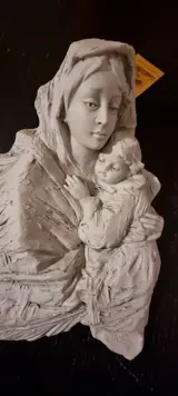 Heilig beeld Madonna met baby Jezus stuk genummerd 825/1000 in keramiek door de beroemde beeldhouwer Barbetta