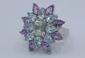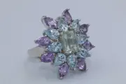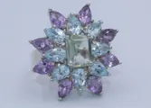 Zilveren ring bezet met natuurlijke gefacetteerde amethist,topaas en kwartz.