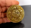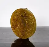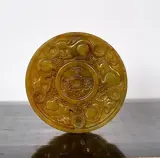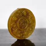 Serpentijnsteen met fijne reliëfversieringen in een prachtige olijfgroene kleur.