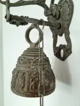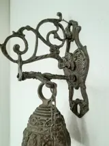 Antieke Oude bronzen kloosterbel afgebeeld met een Mythologie,