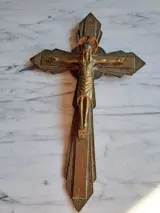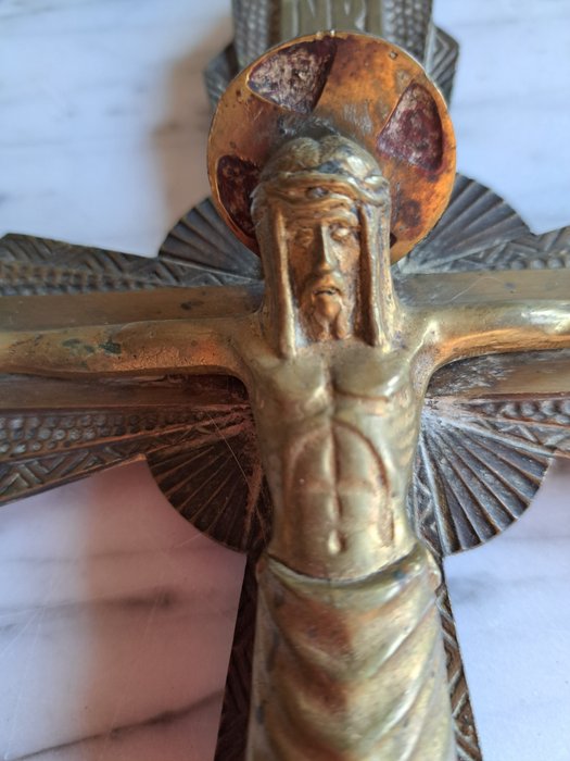 Circa 1930 Art Deco 29 Cm Cross Crucific Jesus Christ Corpus in Brons