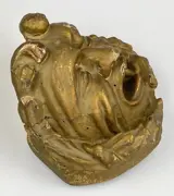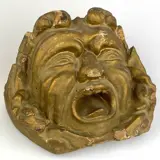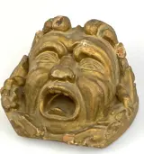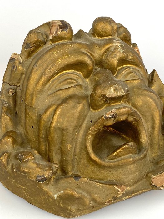 Oude fries in gebeeldhouwd en verguld hout met een gezicht.