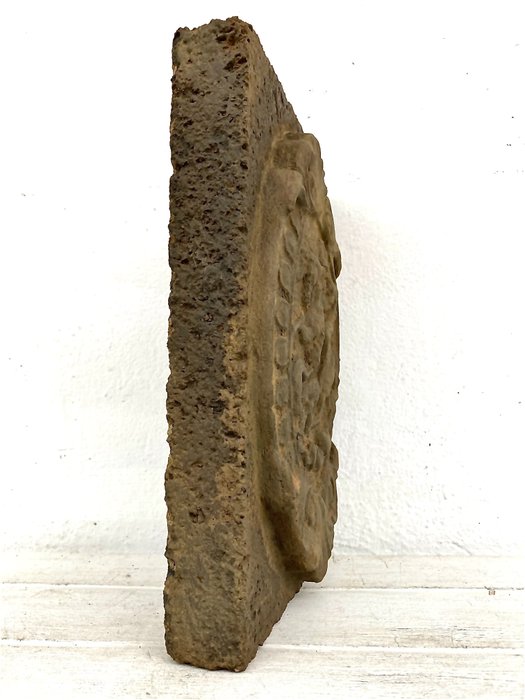 Kalksteen versierd met een aangrenzend beeld van St. Joris die de draak doodt, uitstekende staat van instandhouding, particulier eigendom, gelegen in Capri, geen breuk, uitstekende afwerking en definitie van details, geen breuk, alleen tekenen van slijtage, adequate verzending voor het item, met sporen, geschatte periode.