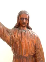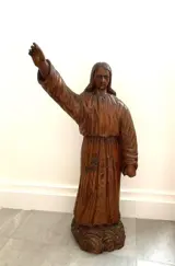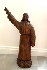 houten sculptuur die Christus voorstelt die zijn hand opsteekt om te zegenen