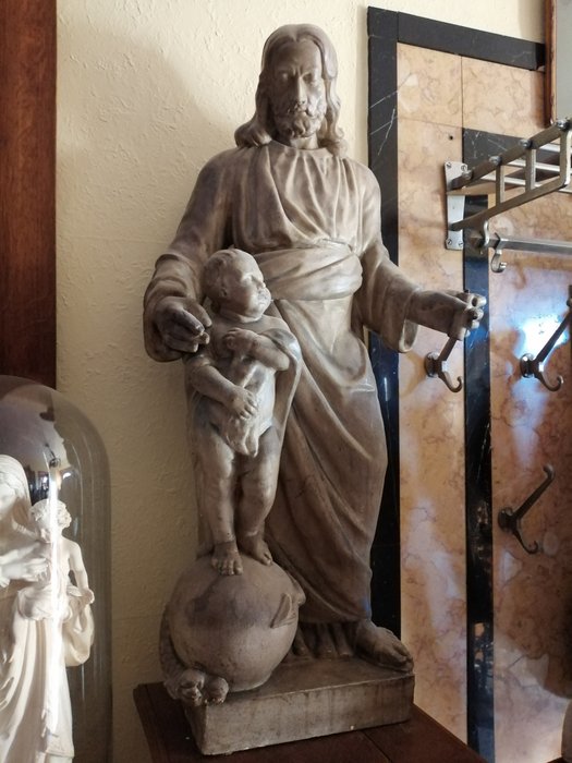 Prachtig Antiek 19e Eeuw Kerkbeeld Heilig Beeld Jozef met Kindje Jezus