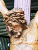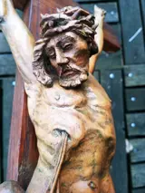 Een prachtig kruis van eikenhout met het Lichaam van Christus geheel uit één stuk notenhout gesneden uit de 18e eeuw, zeer goede staat te zien op de foto's die veel details laten zien en deel uitmaken van de beschrijving.