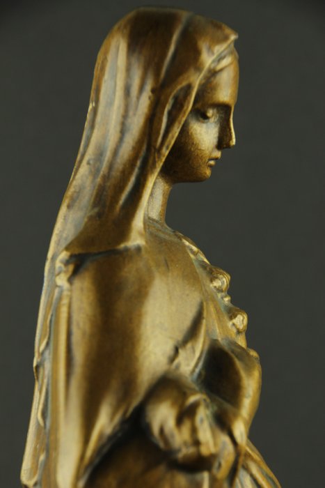 Dit beeld in zamak is volledig intact, heeft een prachtig patina en vertoont gebruikssporen conform de leeftijd.