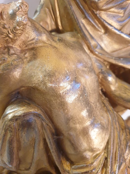 Schitterende en grote piëta in verguld en gepatineerd gips uit het midden van de 19e eeuw
