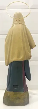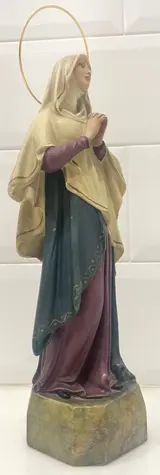 Oude religieuze figuur van de Maagd van Smarten verzegeld uit het beroemde huis van Olot door de beroemde kunstenaar PEDRO LLORET gemaakt aan het begin van de 20e eeuw in houtpulp op een houten voetstuk, koperen halo. Kristallen ogen. Een uniek stuk dat moeilijk te vinden is omdat het geen massaproductie is. Een waar juweel met de hand gemaakt en gepolychromeerd.
