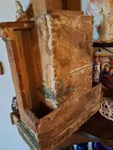 Schitterend bouwwerk, gemaakt eind 1900. Met sculptuur omgeven door heilige afbeeldingen. In uitstekende staat alleen door de jaren heen is het papier wat losgekomen, gemaakt met hout.