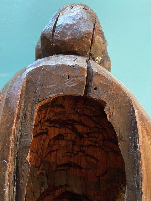 Geheel uitgesneden inhout, de achterkant is hol, zie foto’s.
