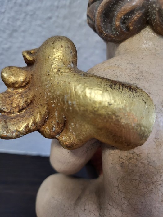 Putto, ster engel prachtig stuk zeer zeldzaam, 33x25x15 cm Zuid-Tirol Italië, met de hand gesneden en met de hand beschilderd verguld, het object is in zeer goede staat, foto's maken deel uit van de beschrijving