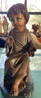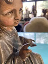 Een prachtige weergave van het kind Jezus in hout met polychrome kleuren.