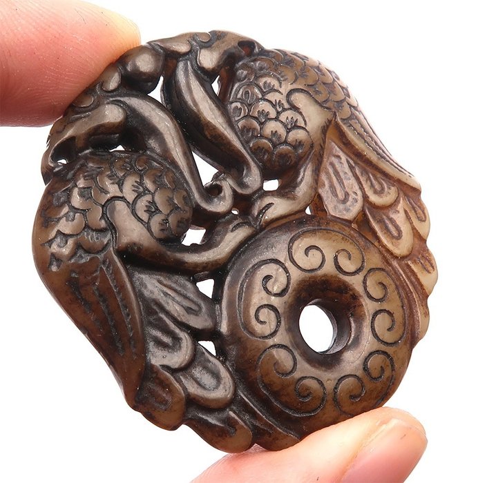 Beschermend amulet - Twee feniksen en een sierlijke Bi-schijf.