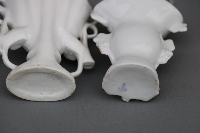 2. vaasje met groene druivenranken, 8cm hoog en breed, achterkant niet beschilderd, gemerkt met het merkteken anker