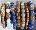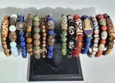 Dit exclusieve lot bestaat uit 14 exclusieve Mala meditatie boeddhistische armbanden voor HEREN., symbool van bescherming (Lapis lazuli, aquamarijn, Tibetaans agaat, onyx, tijgeroog, carneool, rode jaspis, groene hardsteen ...)