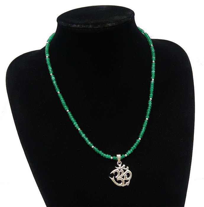 Boeddhistische beschermingsketting versierd met een massief zilveren medaillon - Lettergreep "Om" ॐ.