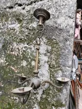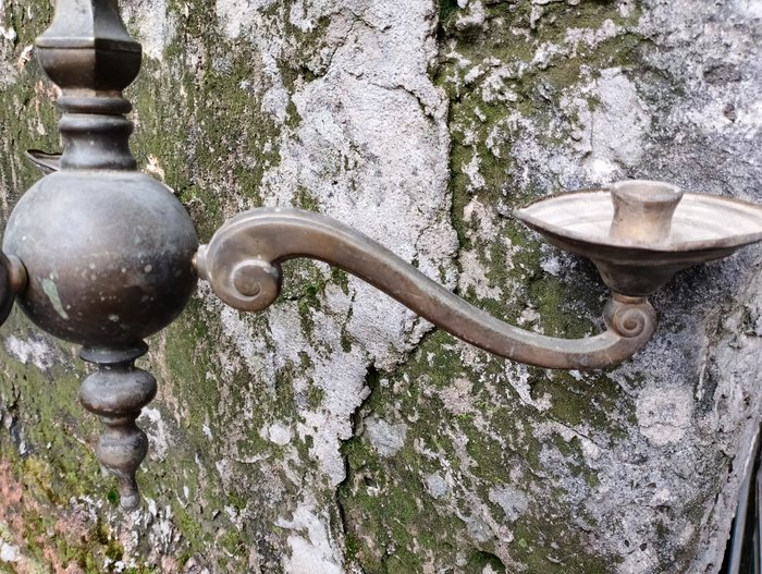 Antieke votief kandelaar. in brons. begin 19e eeuw..kandelaar met 3 demontabele armen. In patina met kleine tekenen van de tijd. Totale hoogte 66cm. Breedte 50cm. Armlengte 24cm. Totaal gewicht 4/5 kg. Over. Uit privécollectie. Ik verzend in uitstekende verpakking met tracking en geschikt materiaal. Materiaalkosten inbegrepen in verzendkosten