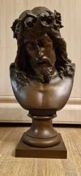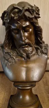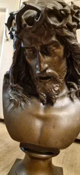 Een prachtige bronzen buste van Jezus gekroond met doornen door Jean Baptiste Germain