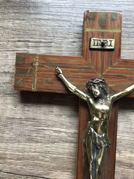 Crucifix (1) - Brons (verguld/verzilverd/gepatineerd/koud geschilderd), Hout
