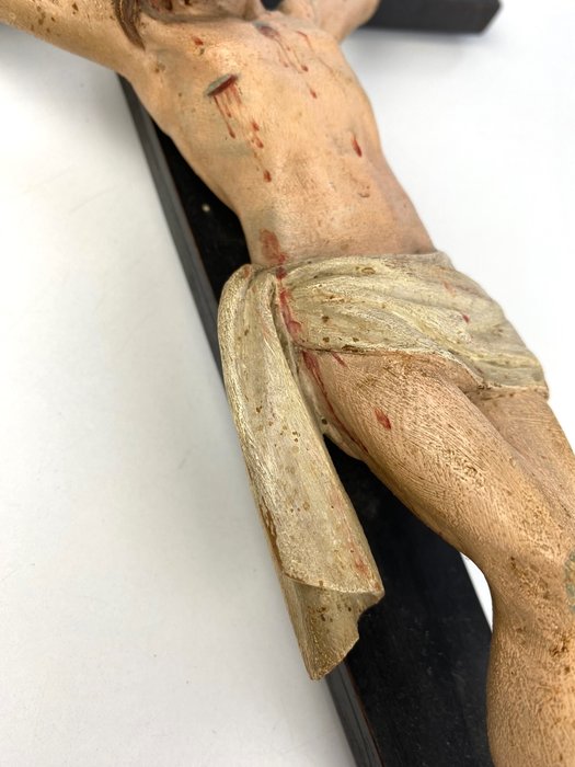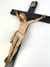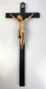 Kruis meet hoogte 58, breedte 25 cm; Christus meet hoogte 24, breedte 18 cm.