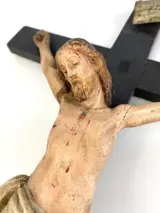 Oude Christus in polychroom hout uit een privécollectie.