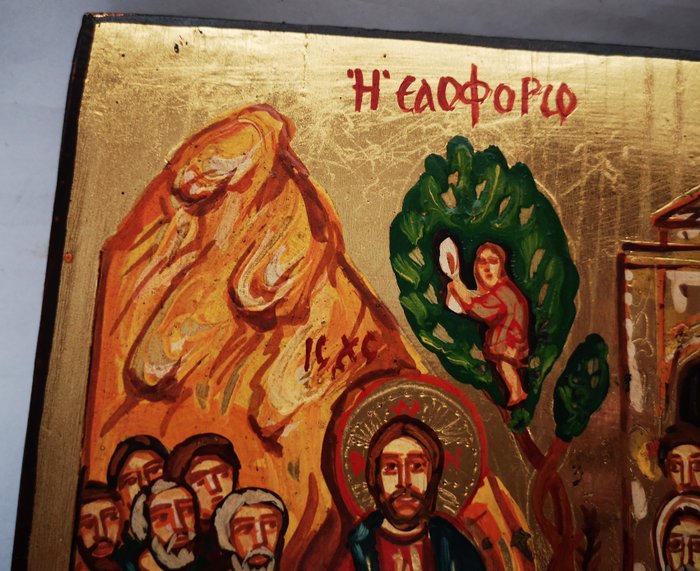 De intrede van de Heer in Jeruzalem: Palmzondag, handgeschilderd Russisch icoon.
