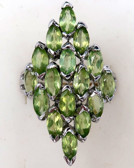De geloofsring van de hoogwaardigheidsbekleder versierd met peridots.