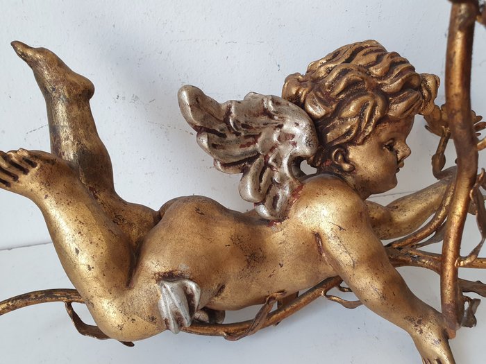 Engel in houtsnijwerk en goud geverfd - Kandelaar met haak