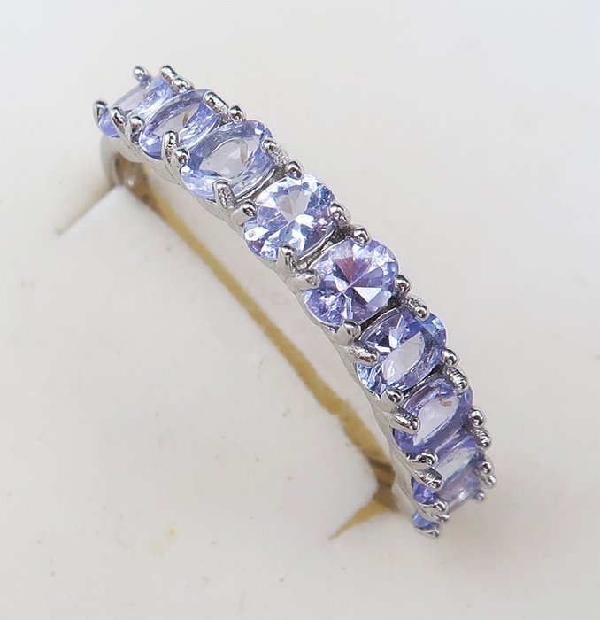 Eternity trouwring gemaakt van 925 zilver versierd met tanzanieten.