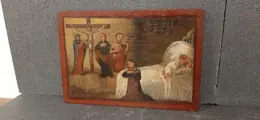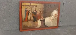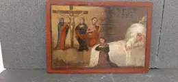Ex voto of gratie verkregen uit de eerste helft van de 19e eeuw ( gedateerd 1835 ), olieverf op hout. Het is (zie onderwerp) een offer gebracht door een moeder aan heiligen en de gekruisigde Christus door voorbede voor haar zieke zoon en het redden van zijn leven. Typisch heilig artikel in gebruik in Italië, waar de gelovigen vaak, na een vermeend wonder, lokale schilders de opdracht gaven om dit soort het gebaar of het vermeende wonder te vertellen. het schilderij meet 31x21 cm, heeft geen gebreken in de polychromie en is nooit gerestaureerd. Vanwege de huidige regelgeving kan het niet buiten de Europese Unie worden verzonden.