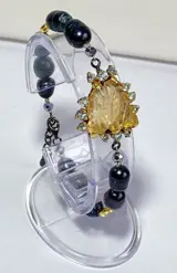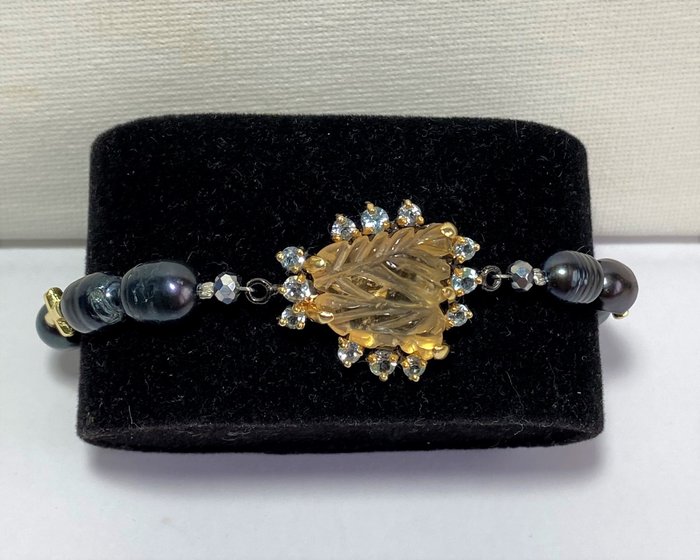 Steen: zwarte parel, citrien (15 kt) en blauwe topaas.