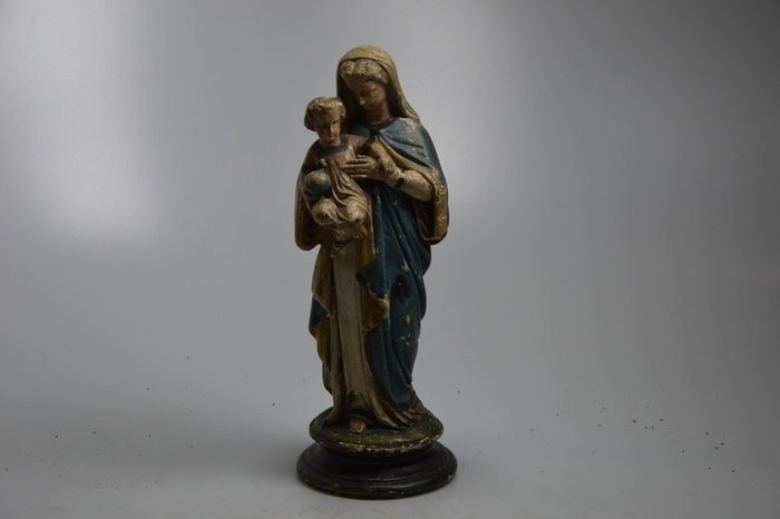 Fraai antiek Maria beeld met Kind. - Gips