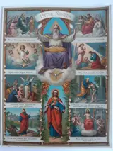 De litho's "les ages de l'homme / les ages de femme" bevatten in het centrum afbeeldingen van Adam en Eva in het paradijs, resp. de schepping van Adam en Eva.