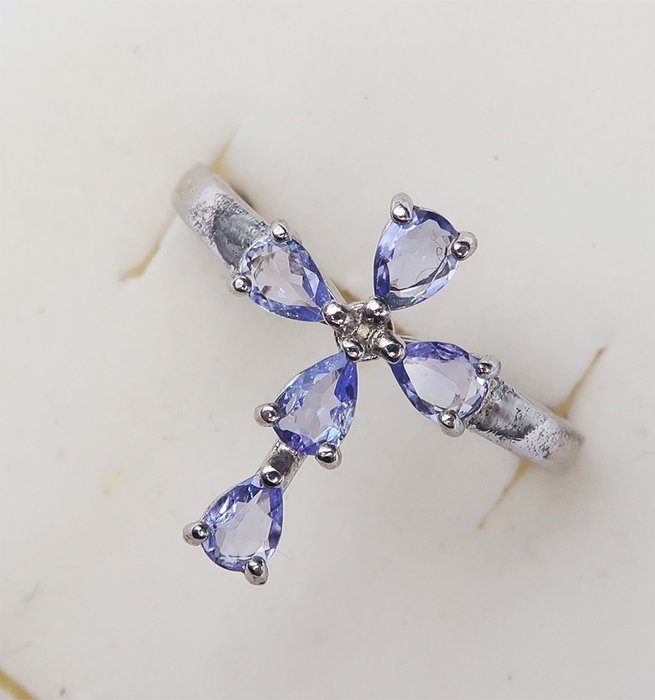 Ring van geloof vervaardigd met een kruis versierd met tanzanieten.