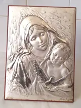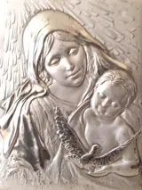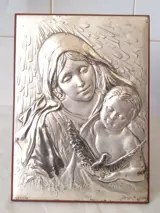 Gesigneerd Icoon - Madonna met kind (1) - Verzilverd