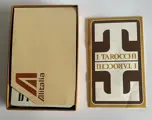 Alitalia Tarotkaarten ontworpen door Gianni Novak voor Alitalia in 1973 in een kartonnen doos bedekt met leer, gemaakt en gemerkt "Nazareno Gabrielli".