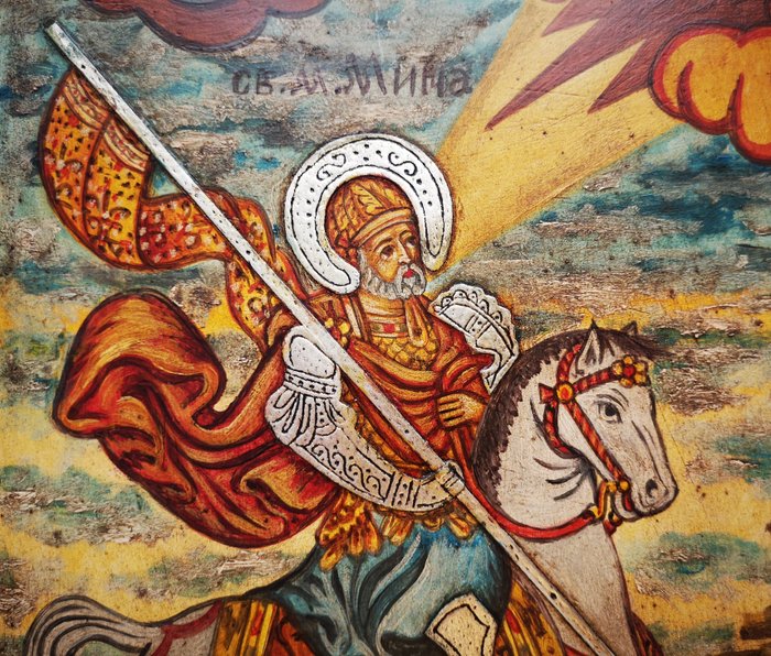 Handbeschilderd Bulgaars icoon van Sint Mina.