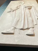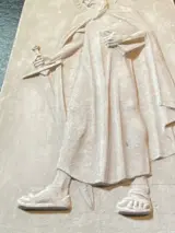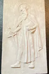 Het reliëf (Saint Paul - in de katholieke kerk wordt Saint Paul beschouwd als de patroonheilige van theologen en pastoors, wevers, tentwevers, mandenmakers, touwmakers, zadelmakers en arbeiders, evenals de katholieke pers.) Hij wordt vaak afgebeeld met het zwaard - enerzijds vanwege zijn martelaarschap - onthoofd met het zwaard, anderzijds vanwege het citaat uit de brief aan de Hebreeën: "Want het woord van God is levend, krachtig en scherper dan enig tweesnijdend zwaard ; het dringt door tot het punt dat het ziel en geest, gewricht en merg scheidt; het beoordeelt de bewegingen en gedachten van het hart." (Hebr. 4:12) Zie foto's voor staat.