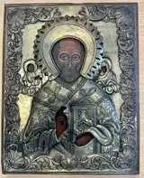 Prachtig Russisch icoon: voorstellende de zegen van Sinterklaas.