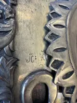 Door mijn grootouders gekocht in Italië. Waarschijnlijk eind vorige eeuw. Materiaal is waarschijnlijk blik met een messing patina.