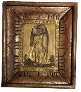 Aartsengel Michaël wordt beschouwd als de patroonheilige van krijgers. Hij is de beschermer van alle orthodoxe christenen tegen zichtbare en onzichtbare vijanden en boze geesten. Het geloof van orthodoxe christenen in zijn hulp bij alle problemen, verdriet en behoeften is sterk. Ze wenden zich tot hem met gebeden voor genezing (dit komt door de verering van hem als de overwinnaar van boze geesten, die in het christendom als een bron van ziekte werden beschouwd), ze bidden ook tot hem bij het betreden van een nieuw huis en bij de wijding van het huis, om redding te vragen van dieven en natuurrampen. In de orthodoxie wordt hij ook vereerd als de patroonheilige van de bouw en bouwers. Handgeschreven pictogram op schoolbord,