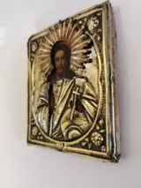 Reisicoon, die soldaten vergezelde in 2 wereldoorlogen, vertoont sterke gebruikssporen, riza gemaakt van messing met reliëf en sporen van de verzilvering is gedeeltelijk gedeukt of ingedeukt. Het schilderij zelf vertoont lichte ouderdomsschade. In deze onveranderde staat sinds juli 1945, is het nooit gerestaureerd. De icoon kwam in het bezit van mijn grootmoeder als dankbetuiging van een Russische officier die zijn eenheid in haar huis had gestationeerd. Deze troep was al op weg naar huis, maar kon niet verder vanwege 3 gewonden. De jonge officier was dol op mijn moeder (6 maanden oud) (heeft haar eigen dochter van dezelfde leeftijd nog niet gezien) en zorgde voor het welzijn van het gezin. Als dank voor de goede verzorging van de gewonden gaf hij deze icoon als beschermend symbool aan mijn oma.