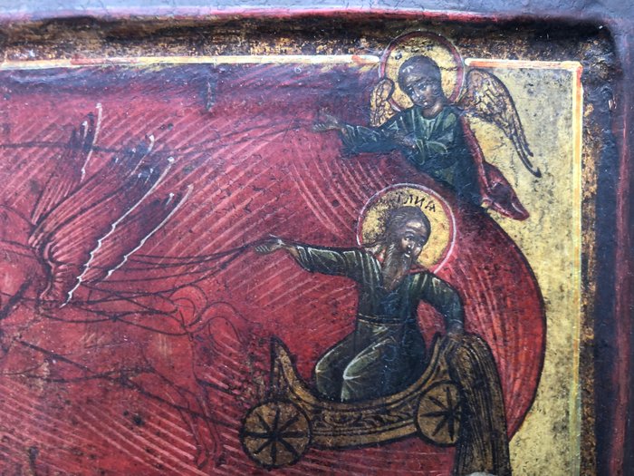 Russisch icoon De vurige hemelvaart van de profeet Elia 19 eeuw in goede staat.