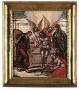 Een Venetiaans-Kretenzische schoolicoon uit de 17e eeuw. De kruisafneming met de Madonna, Johannes de Doper, Maria Magdalena en engelen.