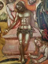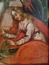 olieverf op houten paneel. Enkele tekenen van slijtage, maar over het algemeen in goede staat van bewaring. Een schilderij van zeer hoge kwaliteit.