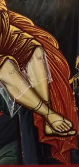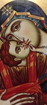 Schitterend handbeschilderd icoon met tempera- en eikleuren op bladgoud, traditionele iconografische stijl, afkomstig uit het noordelijke deel van Moldavië, een gebied dat rijk is aan Byzantijnse kerkelijke tradities.