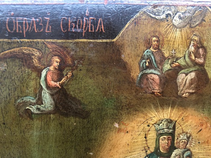 Russisch icoon Onze Lieve Vrouw van Vreugde aan alle Lijders 19 eeuw in goede staat.