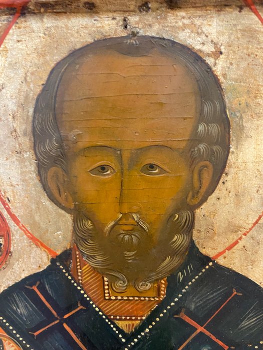 de Kerkslavische titulus is in rode letters links en rechts van de nimbus van Nicolaas geschreven