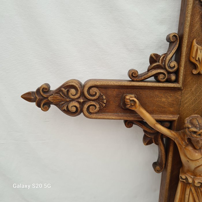 Deze verkoop bestaat uit een zeer groot en mooi volhouten kruisbeeld.
